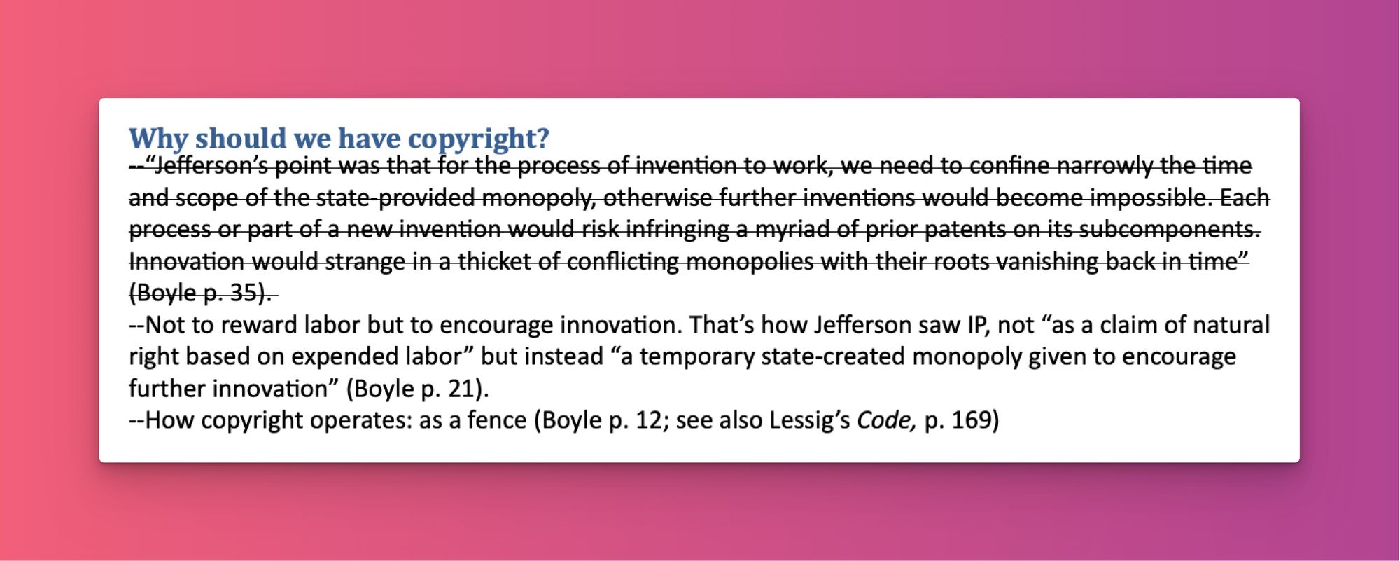 It was an approach kind of like this one that I used during the Dark Ages of writing my dissertation (that period was technologically dark—well over a decade before the advent of Roam, Obsidian, Logseq, and similar apps—and, for me and plenty of other people in graduate school, also mentally or spiritually dark). For each chapter of my dissertation, I had a single Microsoft Word document titled “notesTHEMATIC,” where I would list all the main questions I wanted to answer as well as all the main points I wanted to make. Whenever I came across relevant material in a text I was reading, I’d scroll through the Word document till I found the question or point it related to, and then I’d add it there. I guess there were worse ways I could have done things, such as using finger paint to take all my notes.